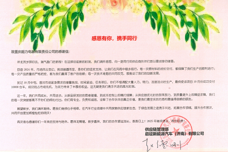 來自啟征新能源汽車(濟(jì)南)有限公司的感謝信